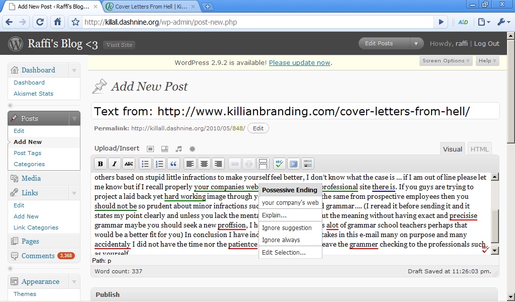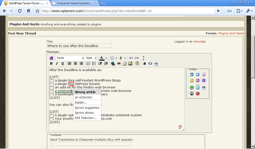 After the Deadline is an intelligent proofreader that checks spelling, misused words, style, and grammar. With our Google Chrome extension, you’re able to use it for most tasks.